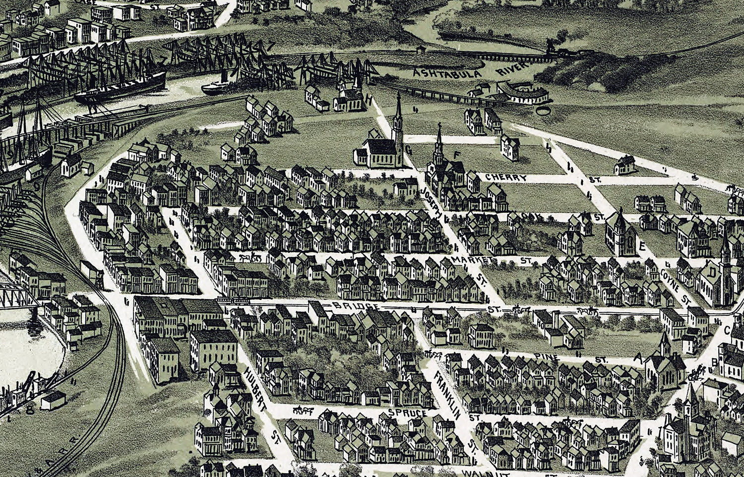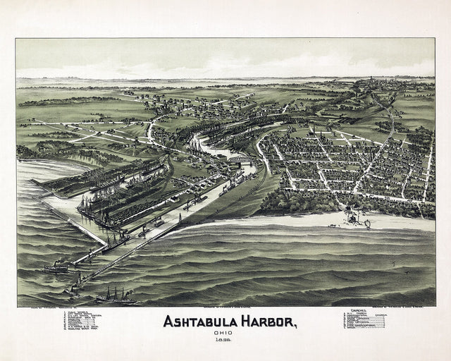 1896 Panoramic Map of Ashtabula Harbor Ohio