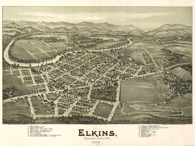 1897 Panoramic Map of Elkins West Virginia
