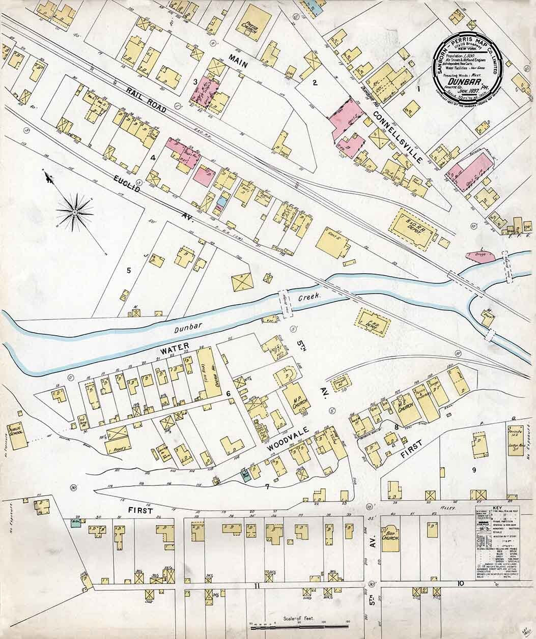 1897 Town Map of Dunbar Fayette County Pennsylvania