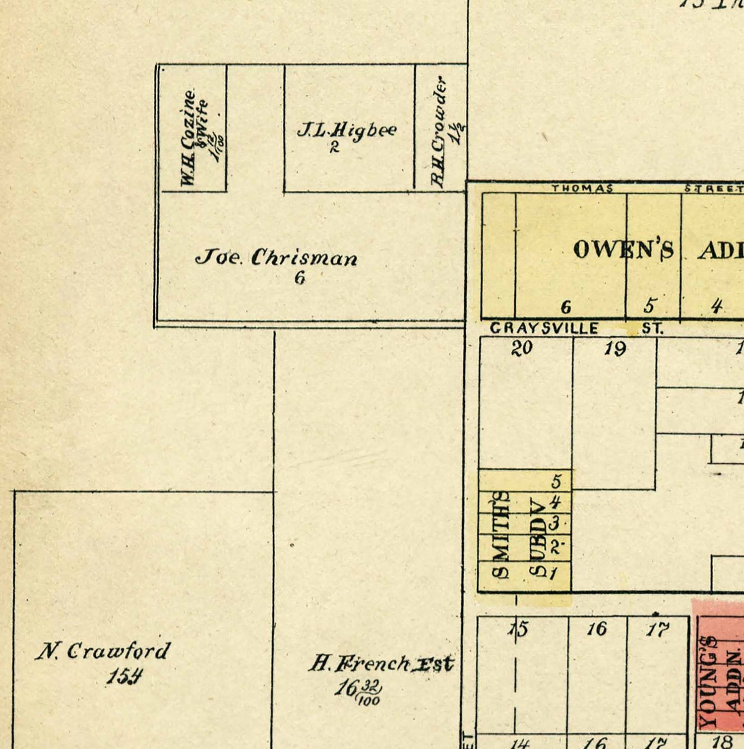 This map shows roads, road names, rail roads, boundary lines, lot numbers, land owner names, place names, and more.