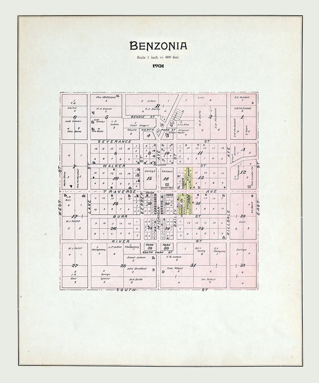 1901 Map of Benzonia Benzie County Michigan - 16" x 20" Matte is backordered and will ship as soon as it is back in stock.