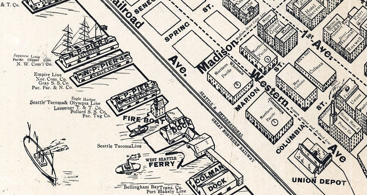 1903 Map of Seattle Washington Business District