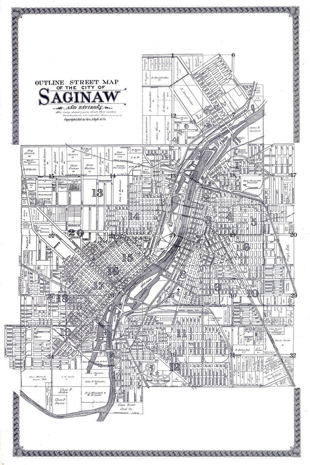 1916 Town Map of Saginaw Michigan - 16" x 24" Matte is backordered and will ship as soon as it is back in stock.