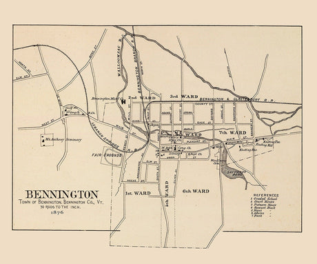- Genealogical Surveyor - 1876 Town Map of Bennington Vermont From $42.00 USDUnit price /UnavailableVery low stock (8 units)