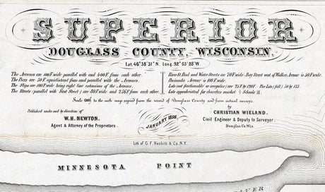 - Genealogical Surveyor - 1856 Map of Superior Douglass County Wisconsin Lake Superior From $35.00 USDUnit price /UnavailableVery low stock (8 units)