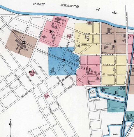 1891 Town Map Lock Haven Clinton County Pennsylvania