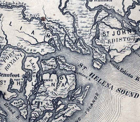 1861 Map of St Helena Sound Charleston Savannah South Carolina
