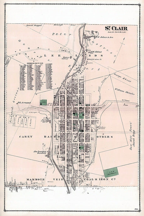 1875 Town Map of St Clair Schuylkill County Pennsylvania