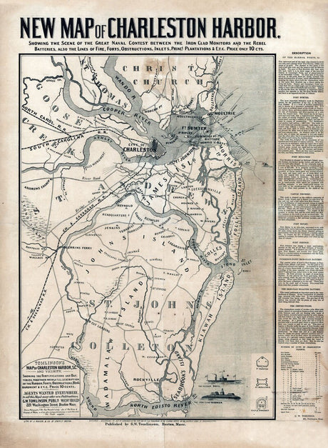 1863 Map of Charleston Harbor South Carolina Landowner Names