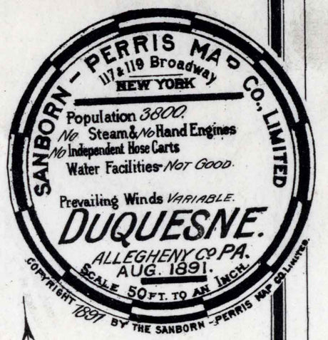 1891 Town Map of Duquesne Allegheny County Pennsylvania
