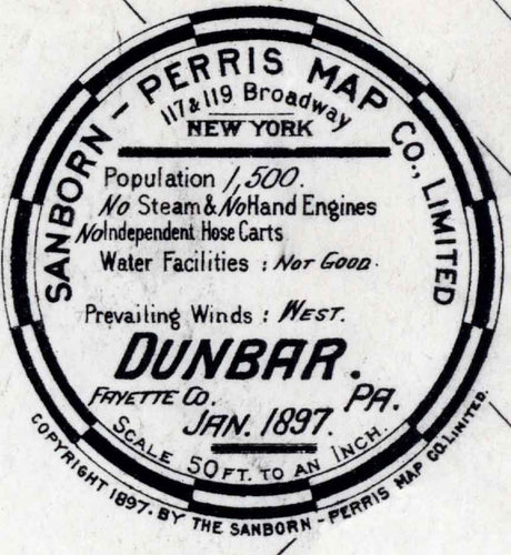 1897 Town Map of Dunbar Fayette County Pennsylvania