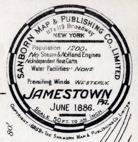 1886 Town Map of Jamestown Mercer County Pennsylvania