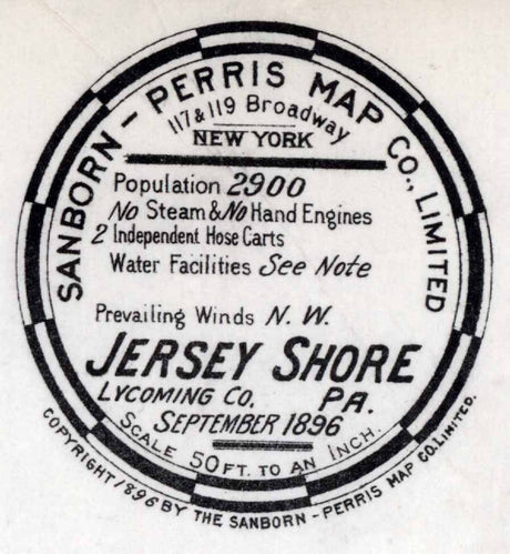1896 Town Map of Jersey Shore Lycoming County Pennsylvania