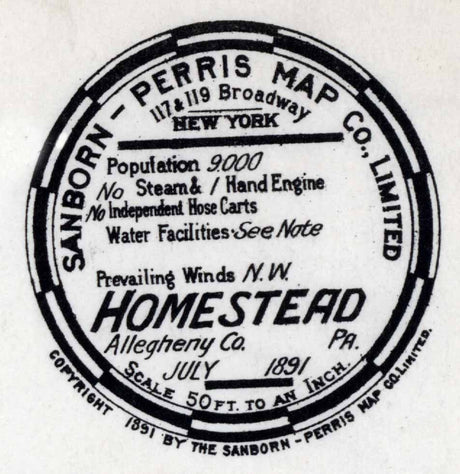 1891 Town Map of Homestead Allegheny County Pennsylvania