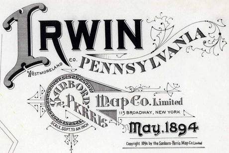 1894 Town Map of Irwin Westmoreland County Pennsylvania