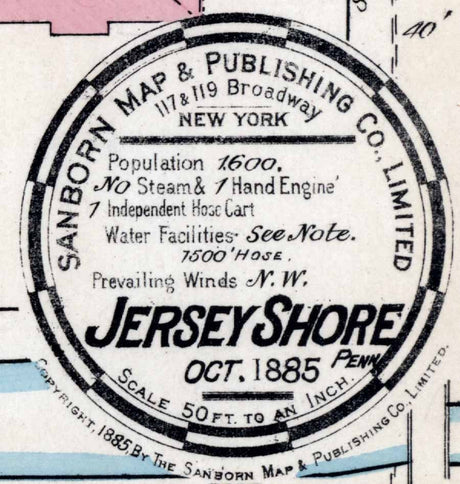 1885 Fire Insurance Sanborn Map of Jersey Shore Lycoming County Pennsylvania