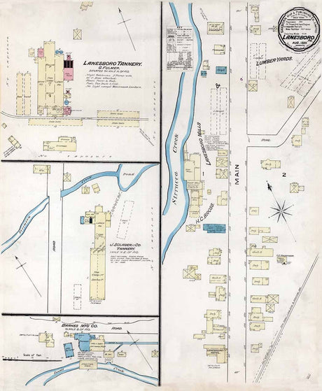 1885 Town Map of Lanesboro Susquehanna County Pennsylvania