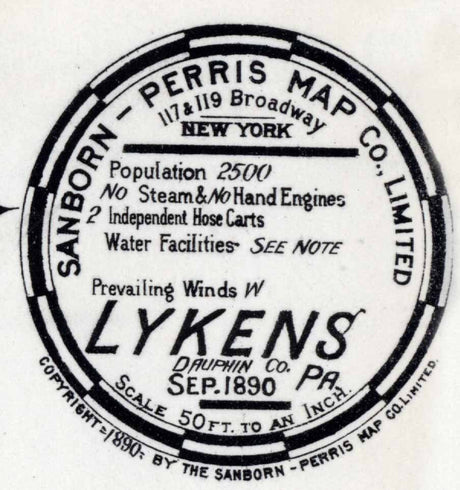 1890 Town Map of Lykens Dauphin County Pennsylvania