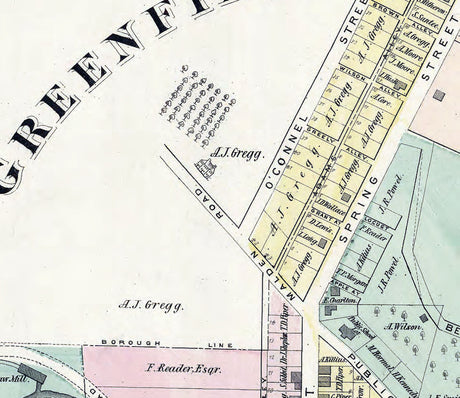 1876 Map of Fredericktown Washington County Pa Greenfield
