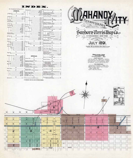 1891 Town Map of Mahanoy City Schuylkill County Pennsylvania