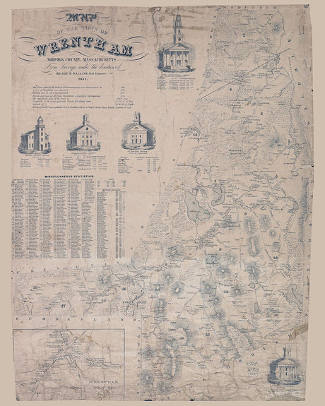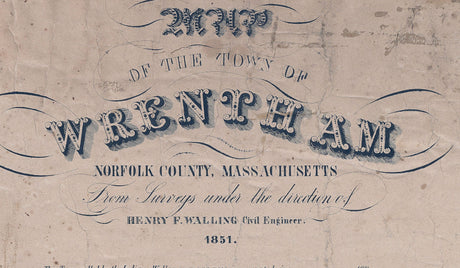 1851 Town Map of Wrentham Norfolk County Massachusetts