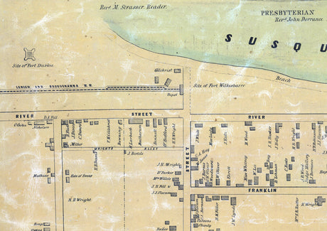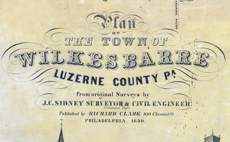 1850 Town Map of Wilkes-Barre Luzerne County Pennsylvania