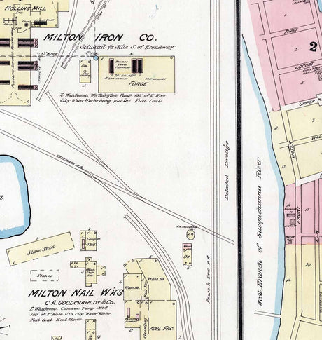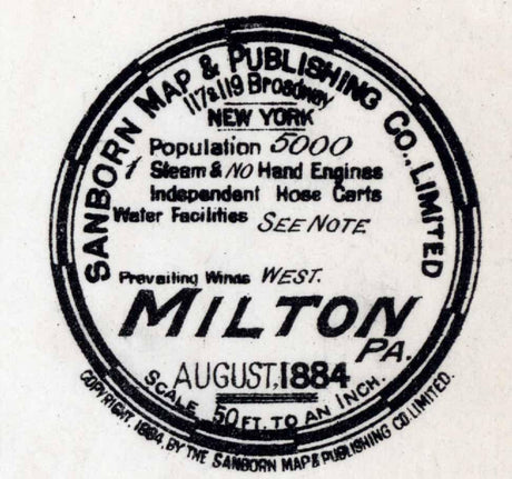1884 Town Map of Milton Northumberland County Pennsylvania