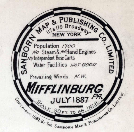1887 Town Map of Mifflinburg Union County Pennsylvania