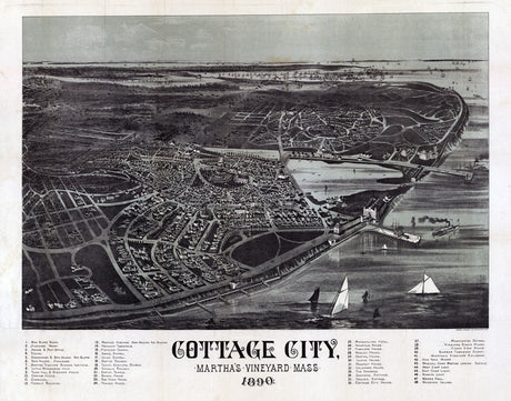 1890 Panoramic Map of Cottage City Martha's Vineyard Mass