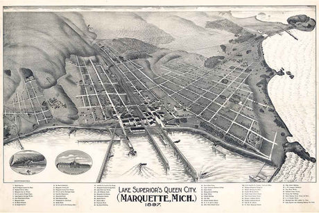 1897 Panoramic Map of Marquette Michigan Lake Superior