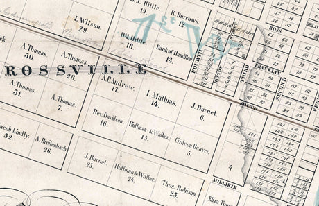 1849 Town Map of Hamilton and Rossville Butler County Ohio