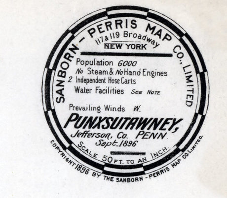 1896 Town Map of Punxsutawney Jefferson County Pennsylvania