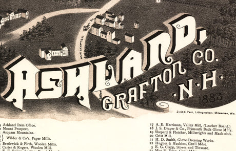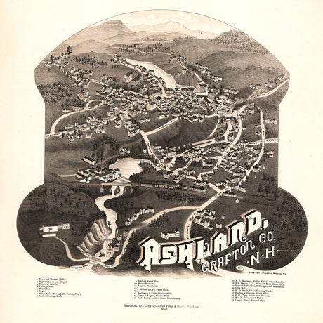 1883 Panoramic Map of Ashland Grafton County New Hampshire