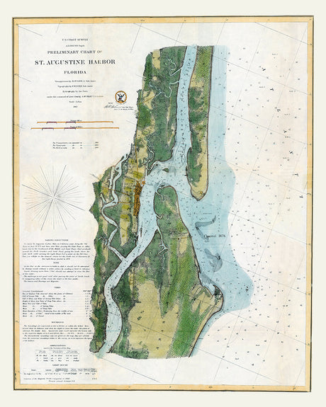 1862 Map of Saint Augustine Harbor Inlet and Islands Florida