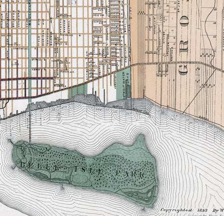 1893 Map of Detroit Wayne County Michigan