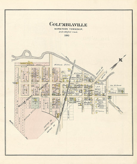 1893 Map of Columbiaville Lapeer County Michigan