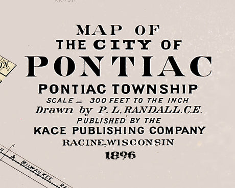 1896 Map of Pontiac Oakland County Michigan