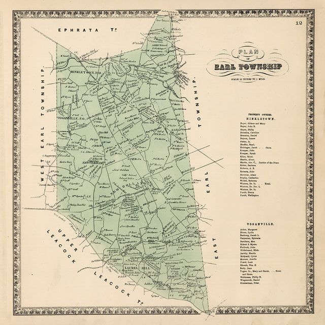 1864 Map of Earl Township Lancaster County Pennsylvania - 16" x 16" Matte is backordered and will ship as soon as it is back in stock.