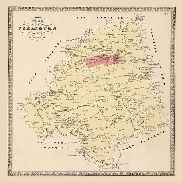 1864 Map of Strasburg Township Lancaster County Pennsylvania - 16" x 16" Matte is backordered and will ship as soon as it is back in stock.