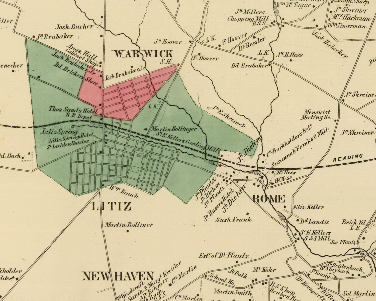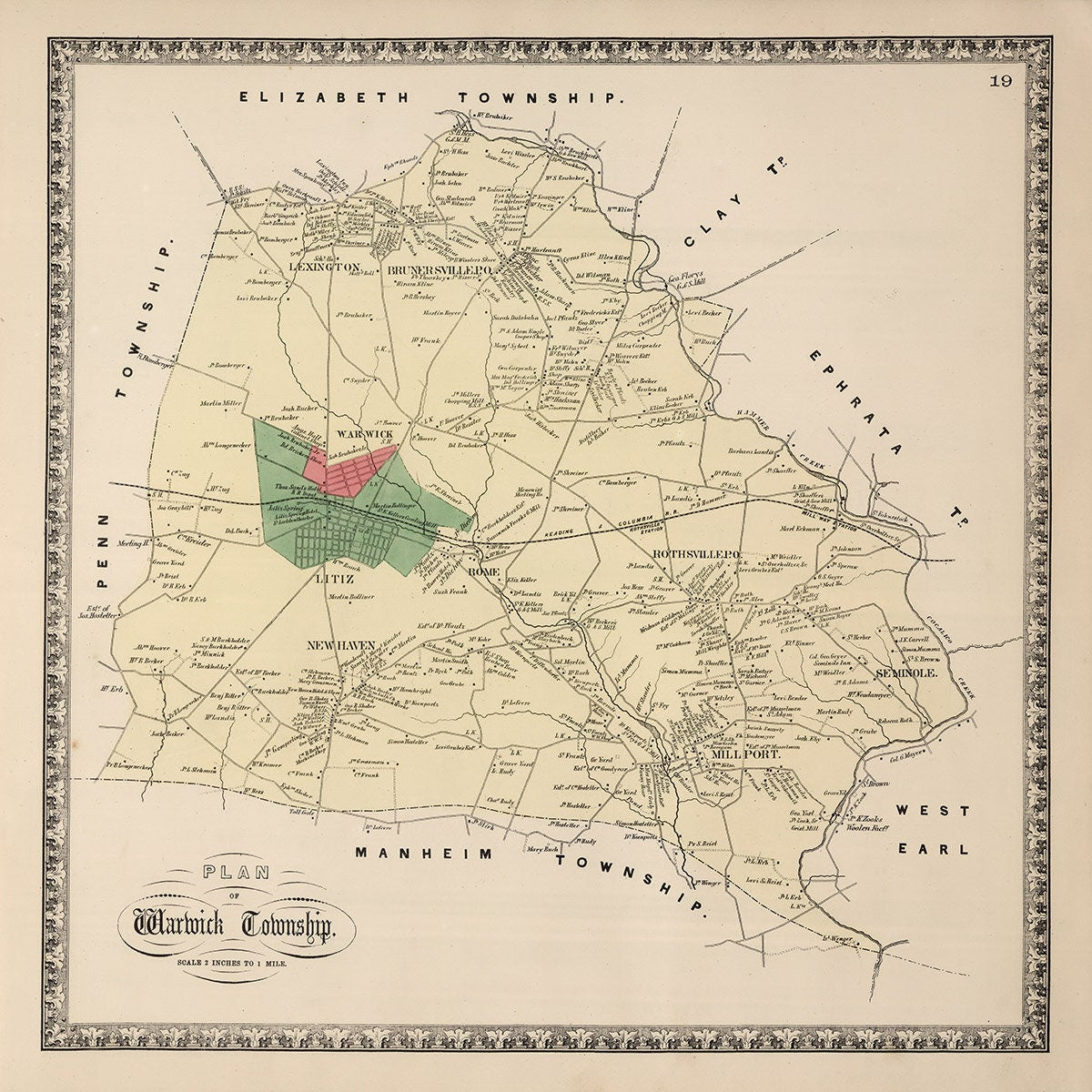 1864 Map of Warwick Township Lancaster County Pennsylvania