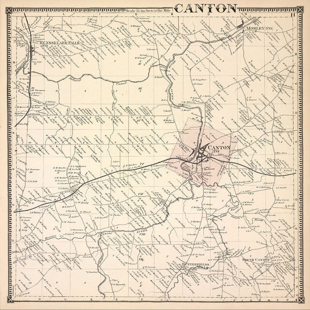 1865 Map of Canton Township Saint Lawrence County New York - 16" x 16" Matte is backordered and will ship as soon as it is back in stock.