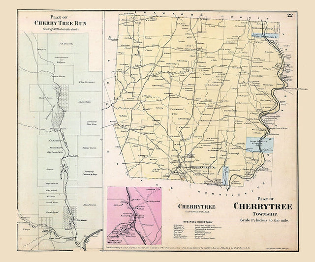 1865 Map of Cherrytree Township Venango County Pennsylvania Oil Region