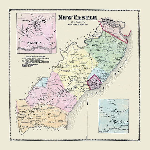 1868 Map of New Castle Hundred New Castle County Delaware - 20" x 20" Matte is backordered and will ship as soon as it is back in stock.