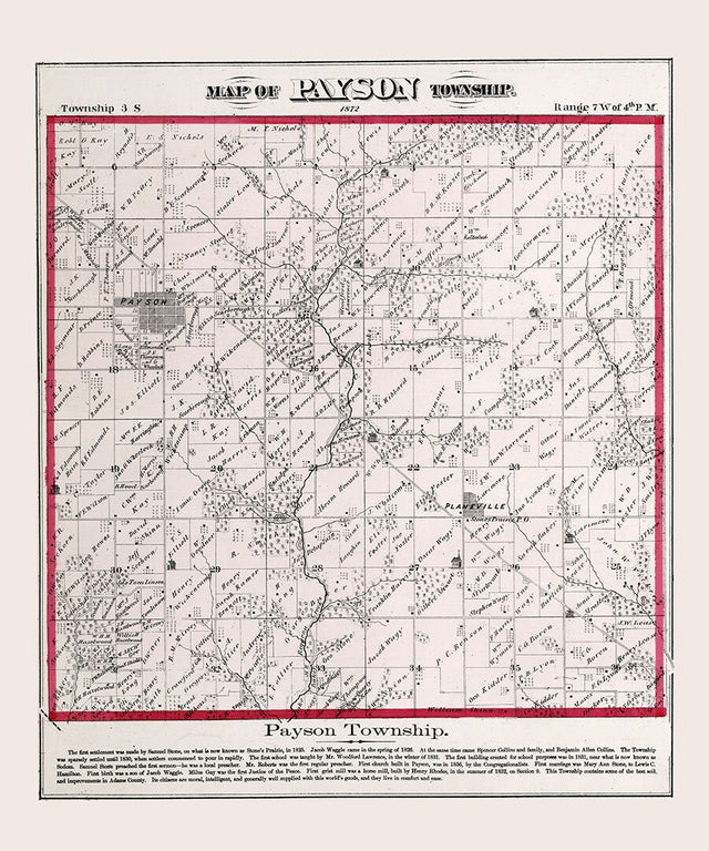 1872 Map of Payson Township Adams County Illinois - 16" x 20" Matte is backordered and will ship as soon as it is back in stock.