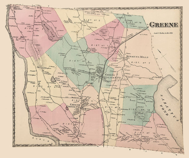 1873 Map of Greene Township Androscoggin County Maine