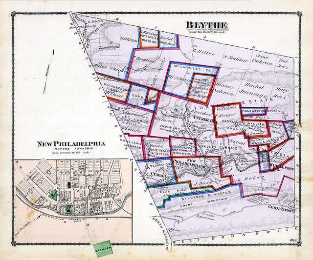 1875 Map of Blythe Township Schuylkill County Pennsylvania New Philadelphia - 16" x 20" Matte is backordered and will ship as soon as it is back in stock.