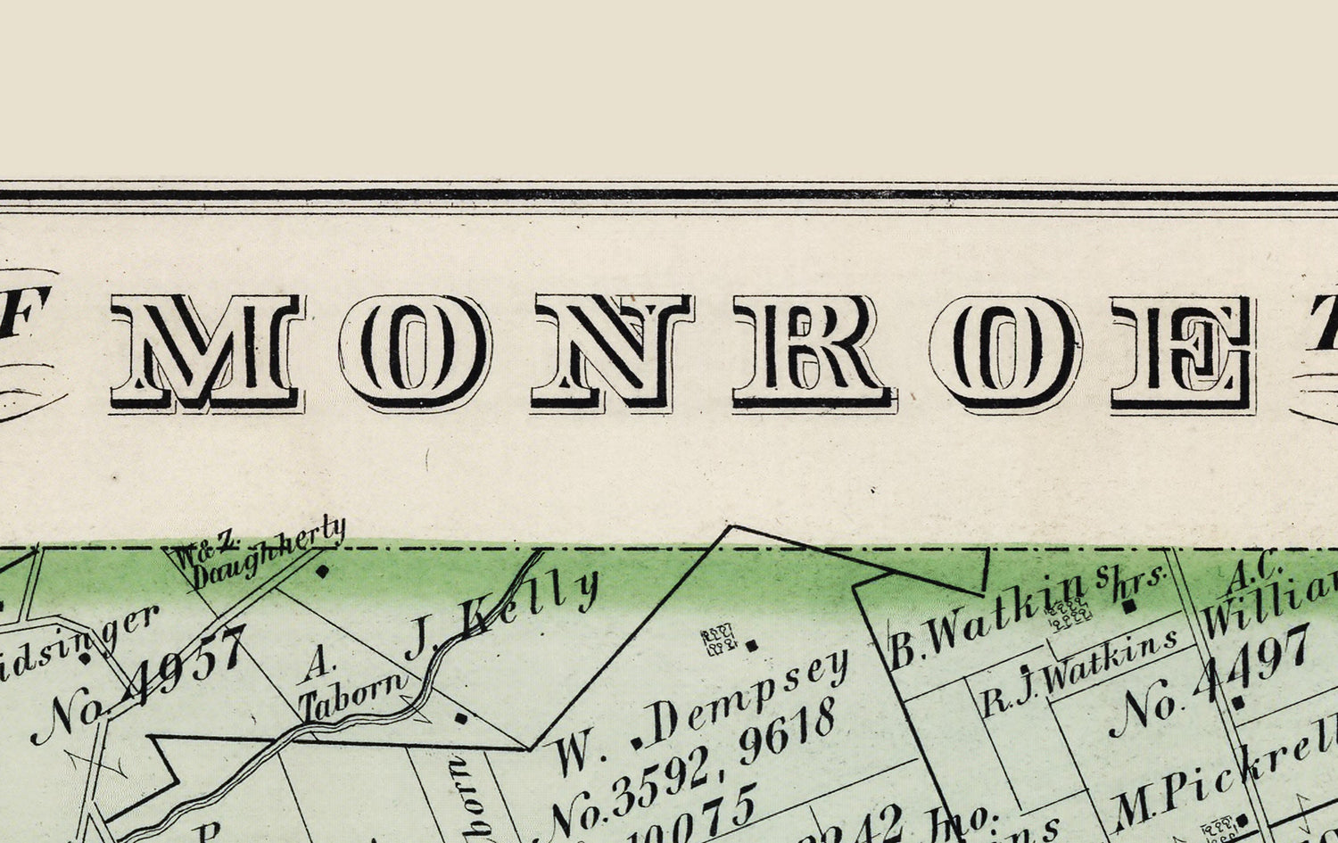 1875 Map of Monroe Township Logan County Ohio - 16" x 16" Matte is backordered and will ship as soon as it is back in stock.