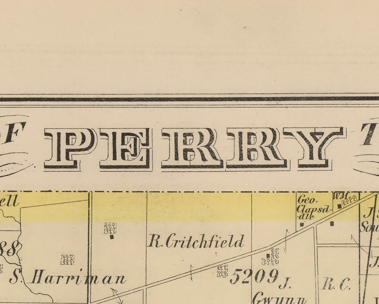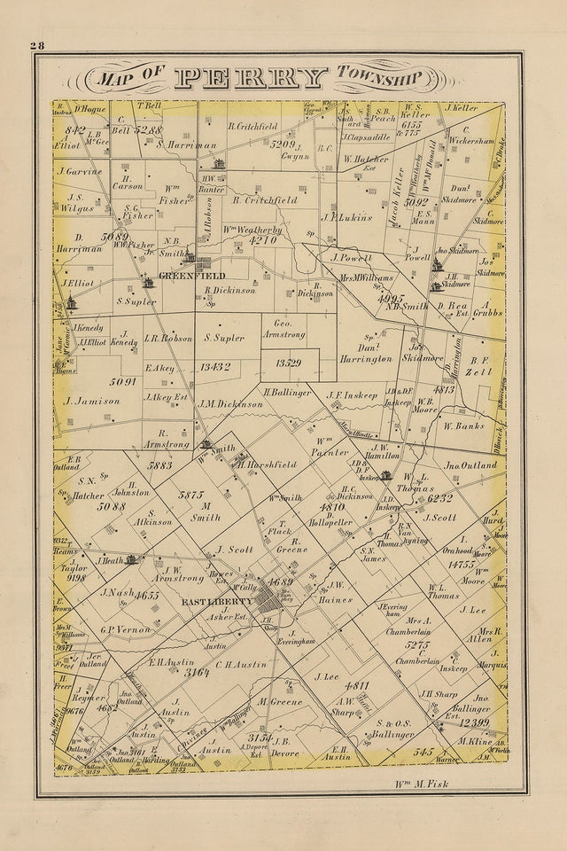 1875 Map of Perry Township Logan County Ohio - 16" x 24" Matte is backordered and will ship as soon as it is back in stock.