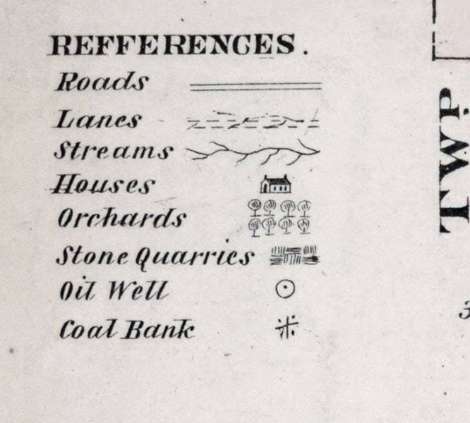 This map shows roads, buildings, place names, family names, historic places, and more! It also shows oil wells and coal banks!