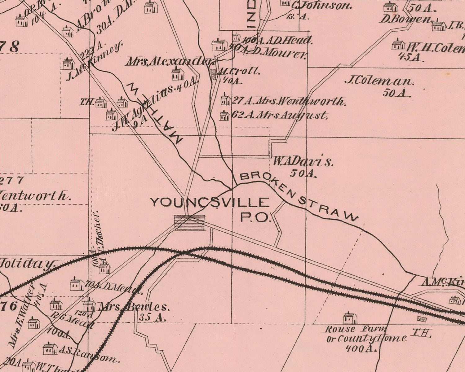 This map shows boundary lines, land owner names, roads, historic places, towns, and more.